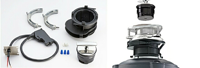 シンク排水口径Φ115mmおよび180mm外径シンクに使えます。 180mm口径のシンクの場合には別売りの180mmシンク用アダプターを使用します。